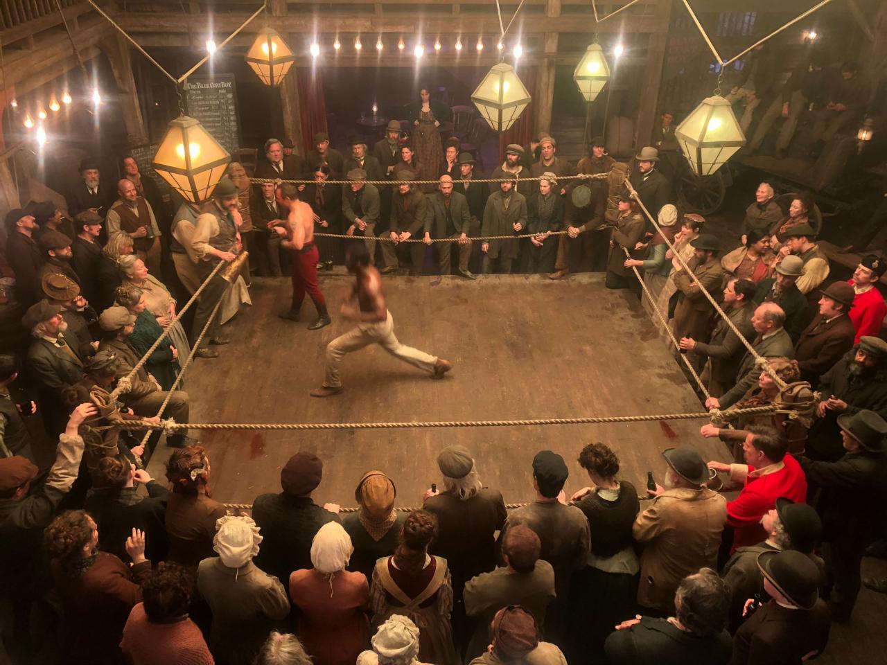 Season 2 of A Thousand Blows sees the boxers of the East End return bigger, badder, and more relentless than ever. This season ramps up both action and spectacle, pushing storyline and visuals right to the forefront. We revisited the much-loved settings of the Blue Coat Boy and the Green Dolphin, supported by a standby crew whose sole focus was creating atmosphere through practical effect; from ambient smoke to roaring fireplaces. To further sell the grime and discomfort of the town, wet-downs and smoke were used whenever scenes moved outdoors, as well as practical effects for the background cast to interact with, the blacksmiths building with a constant raw of flame and smoke, braziers dotted around to keep actors and crew warm between takes, and the much loved hot potato trolley, all helping to ground the world in a bleak, gritty realism.